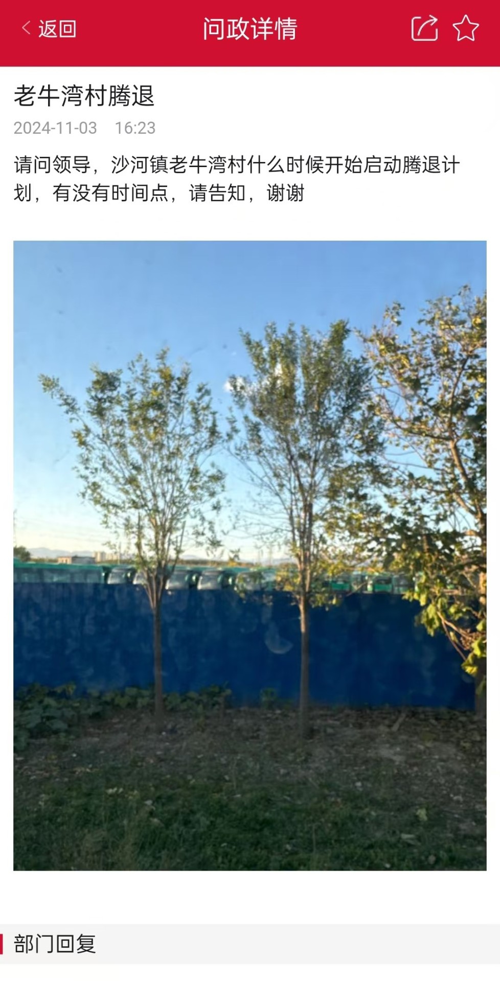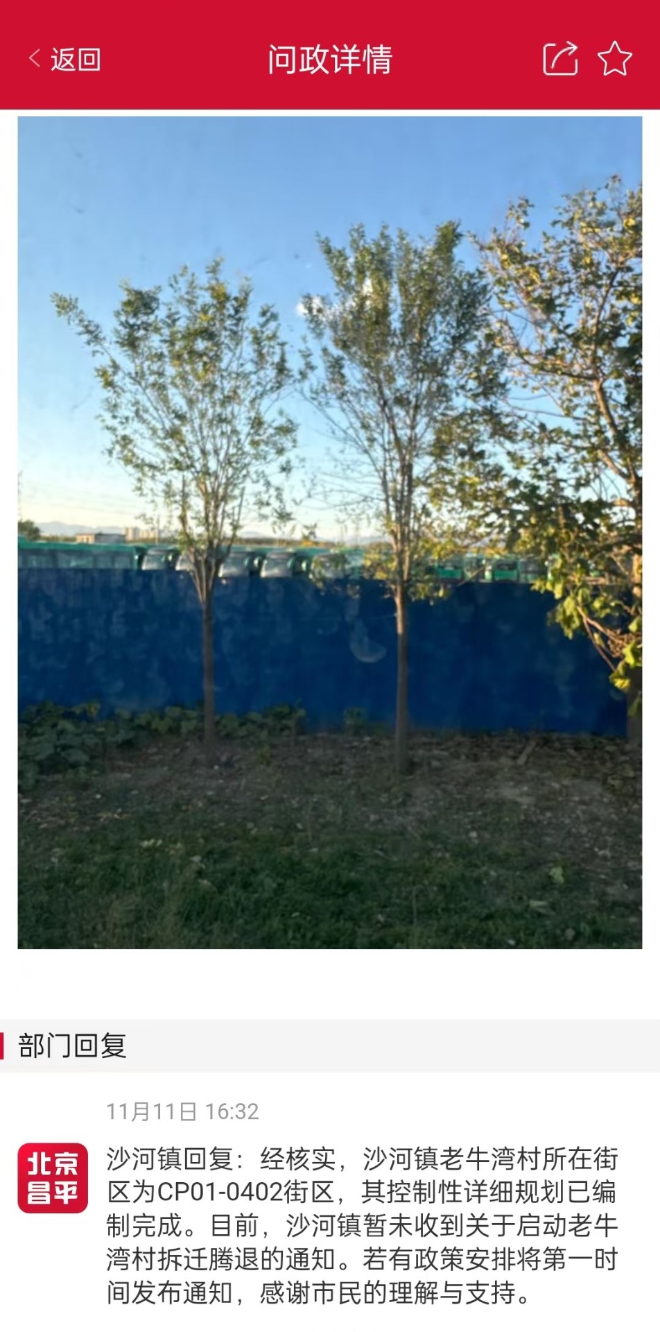 方興建筑提示您,北京昌平公眾號沙河鎮(zhèn)回復(fù):經(jīng)核實(shí),沙河鎮(zhèn)老牛灣村所在街區(qū)為CP01-0402街區(qū),其控制性詳細(xì)規(guī)劃已編制完成。目前,沙河鎮(zhèn)暫未收到關(guān)于啟動(dòng)老牛灣村拆遷騰退的通知。若有政策安排將第一時(shí)間發(fā)布通知,感謝市民的理解與支持。